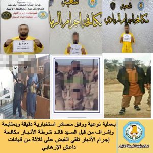 ألقت مفارز لواء شرطة الطاقة الثامن في محافظة البصرة بالتنسيق مع استخبارات شرطة الطاقة، القبض على (4) متهمين كانوا يعملون قرب البئر النفطية (RU205) ضمن قاطع مسؤولية اللواء من دون تصاريح أمنية وضبطت عجلتهم، حيث تم إيداعهم التوقيف وحجز المضبوطات التي بحوزتهم استناداً للقانون رقم (٤١) لسنة (٢٠٠٨) الخاص بمكافحة تهريب النفط ومشتقاته.