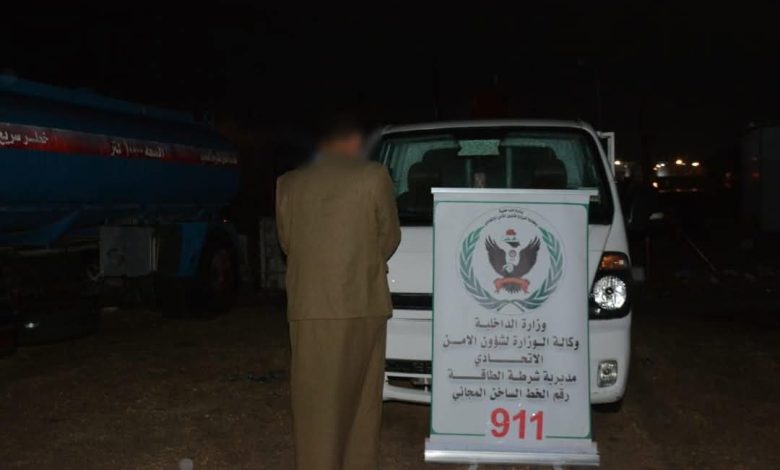 القت مفارز اللواء السابع في محافظة ذي قار، بالتنسيق مع استخبارات شرطة الطاقة، القبض على متهم بالمتاجرة غير المشروعة بالمشتقات النفطية وضبطت عجلته نوع (بيك اب) لقيامه بتحميل منتوج نفطي أكثر من الحصّة المقررة له، وتم إيداعه في التوقيف وحجز المضبوطات استكمالاً للتحقيقات استناداً للقانون رقم (٤١) لسنة (٢٠٠٨) الخاص بمكافحة تهريب النفط ومشتقاته.