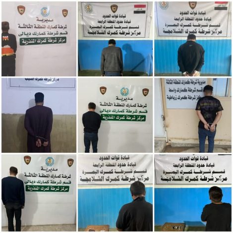 قوات الحدود تلقي القبض على (10) متهمين بحوزتهم مواد مخدرة في البصرة وديالى وواسط وميسان..