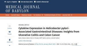 ضمن النشاطات العلمية والبحثية المشتركة بين أساتذة كلية الطب / الجامعة المستنصرية نشرت مجلة بابل الطبية Medical Journal of Babylon بحثاً علمياً مشتركاً حول ( التعبير عن السيتوكينات في الأمراض المعدية المعوية المرتبطة ببكتيريا الملوية البوابية: رؤى من التهاب القولون التقرحي وسرطان القولون Cytokine Expression in Helicobacter pylori-Associated Gastrointestinal Diseases: Insights from Ulcerative Colitis and Colon Cancer ) في العدد January-March 2025 والذي أعده كل من الأستاذ المساعد الدكتورة زينب فاضل عاشور والأستاذ المساعد الدكتورة رفيف صبيح جمال والأستاذ المساعد الدكتورة وسن عبد الاله باقر ( أعضاء الهيئة التدريسية في فرع الأحياء المجهرية في كلية الطب / الجامعة المستنصرية ) .
