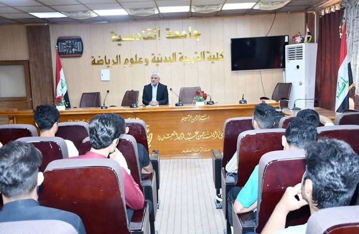 اقامت كلية التربية البدنية وعلوم الرياضة بجامعة القادسية ورشة توعوية بعنوان (دور الرياضة في مكافحة الارهاب والافكار المتطرفة لدى الشباب) حاضرها ا.د رياض جمعة حسن تناولت دور الرياضة في محاربة التطرف الفكري