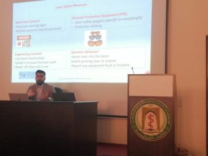 وتطرقت الندوة الى نظرة عامة عن السلامة من إشعاع الليزر في مختبرات الفيزياء الطبية ، والمخاطر المرتبطة باستخدام الليزر الطبي ، مع توضيح التصنيف حسب مستوى الخطورة ، وشرح الأخطار المحتملة مثل إصابات العين والجلد ، وتؤكد على أهمية تطبيق إجراءات السلامة مثل استخدام معدات الحماية الشخصية والضوابط الهندسية والسلوك السليم للمشغّل ، والتشديد على ضرورة التدريب والتوثيق وتقييد الوصول على الأفراد المدربين فقط لضمان بيئة مختبر آمنة.