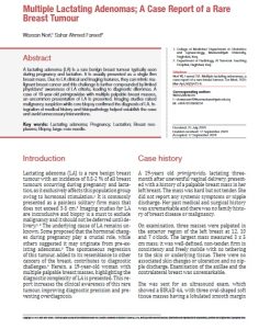وبين البحث ان الغدة اللبنية (LA) هي ورم ثديي حميد نادر يظهر عادةً أثناء الحمل والرضاعة ، وعادة ما يتم تقديمه ككتلة ثديية صلبة واحدة ، ونظراً لخصائص LA السريرية والتصويرية ، يمكن أن تشبه سرطان الثدي الخبيث ، وتزيد هذه التحديات بسبب محدودية وعي الأطباء بمعايير LA، مما يؤدي إلى صعوبات تشخيصية.