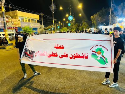 وذكر” نقيب الفنانين في ميسان : إن حملة “ناشطون على خطى السلام” هي حملة حسينية عظيمة وكبيرة بمفاهيمها العميقة , من خلال شعاراتها لنبذ الطائفية , ومحاربتها للابتزاز والمخدرات , ومطالبتها بمحاربة الفساد .