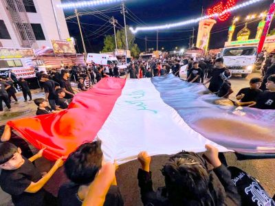 تحت شعار “ناشطون على خطى السلام” : نقابة الفنانين في ميسان تشارك بمسيرة حسينية