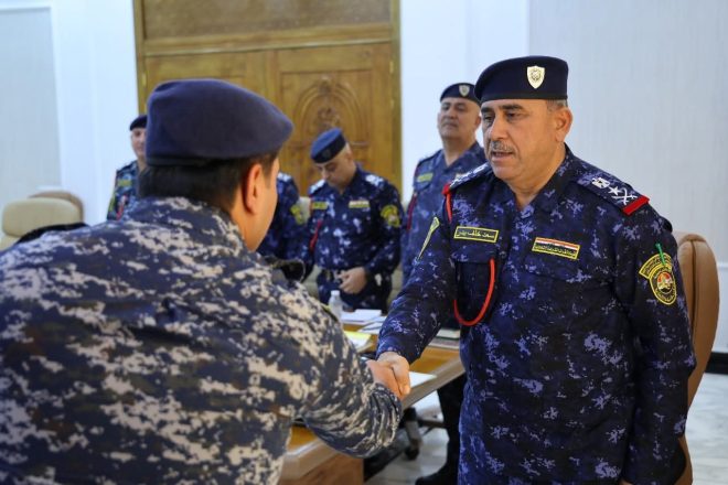 تنفيذاً لتوجيهات السيد قائد قوات الشرطة الاتحادية اللواء الركن “سعد خلف بدر” بضرورة متابعة الأمور الإدارية والفنية، عقد قائد الفرقة الخامسة شرطة اتحادية اللواء “جعفر صادق حميد”، مؤتمراً إدارياً حضره رئيس أركان الفرقة ومدراء الأقسام وضباط الركن، تم خلاله مناقشة انجاز الاعمال الادارية والفنية واللجان المشكلة لمتابعة التشكيلات والوحدات، والتأكيد على متابعة تنفيذ الواجبات بشكل دقيق ومهني، وشدد على ضرورة تكثيف الجهود والعمل بروح الفريق الواحد لتقديم أفضل ما يمكن وفقاً لتوجيهات المراجع.