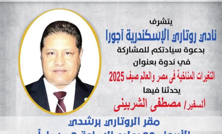 في ندوة روتاري الإسكندرية آجورا: السفير مصطفى الشربيني يؤكد ضرورة التحول الأخضر لحماية الإسكندرية والدلتا من تغير المناخ