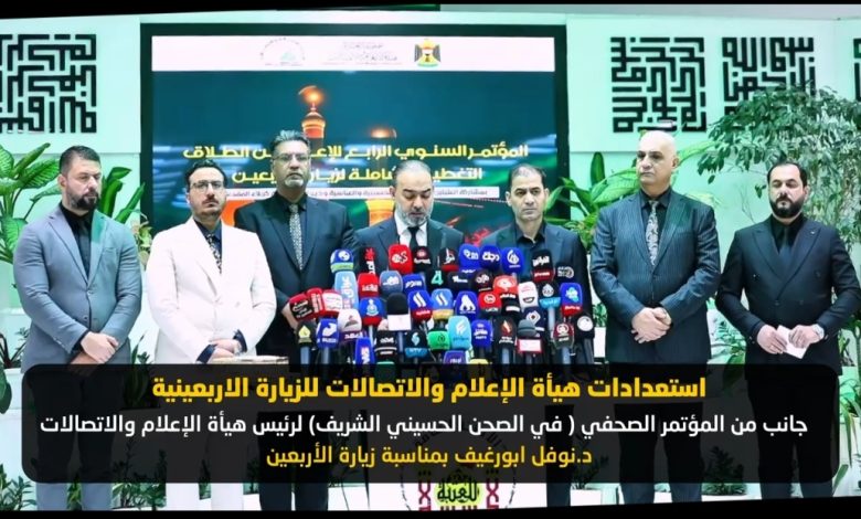 المؤتمر الصحفي لرئيس هيأة الإعلام والاتصالات د.نوفل أبورغيف عن جهود الهيأة في تغطية زيارة الأربعين.