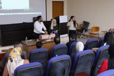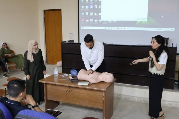 وفي الختام اشتملت الدورة شرحاً عن أساسيات انقاذ الحياة ودعم الحياة القلبي المتقدم مع تطبيق عملي لكيفية اجراء الانعاش القلبي الرئوي وكيفية اعطاء الأدوية المستعملة في الانعاش وجهاز الصعق الكهربائي للقلب.