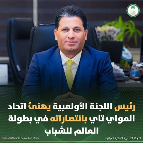 أجرى رئيس اللجنة الأولمبية الوطنية العراقية الدكتور عقيل مفتن اتصالاً هاتفياً برئيس الاتحاد العراقي للمواي تاي مصطفى جبار علك، هنأه فيه بالانتصارات التي حققها أبطال العراق في بطولة العالم للشباب الجارية في العاصمة الإماراتية أبوظبي.