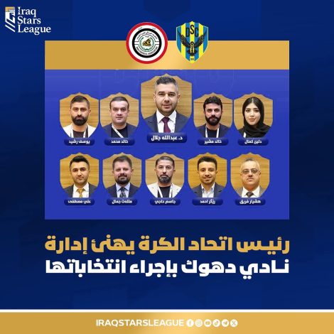رئيس اتحاد الكرة يهنئ إدارة نادي دهوك بإجراء انتخاباتها