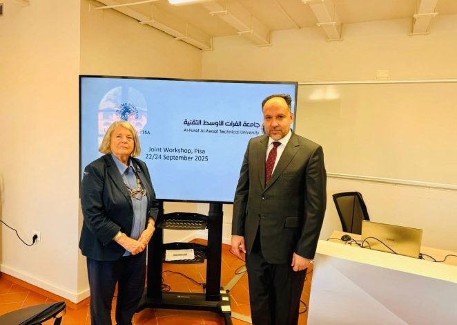 جامعة الفرات الأوسط التقنية تشارك في ورشة دولية بجامعة بيزا الإيطالية حول مسار بولونيا