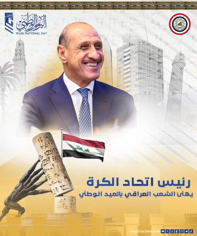 رئيس اتحاد الكرة يهنئ الشعب العراقي بالعيد الوطني ويؤكد وحدة أبناء الوطن