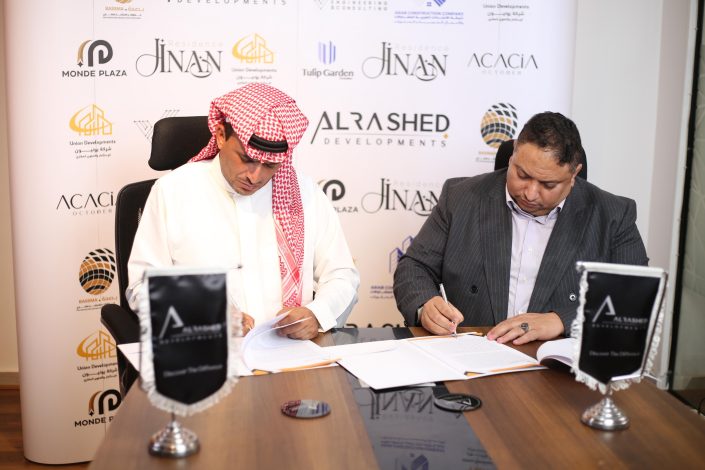 شهد مقر شركة الراشد للتطوير العقاري – إحدى الشركات الرائدة في مجال التطوير العقاري بغرب القاهرة – نجاح مراسم توقيع شراكة استراتيجية وطنية بين شركة الراشد للتطوير العقاري وسمو الشيخ جابر بن سعيد الحربي، مالك ورئيس مجلس إدارة منتجعات وفنادق فينسيا بمصر، لتنفيذ مشروع عقاري ضخم بمدينة الشيخ زايد الجديدة يحمل اسم JINAN، بإجمالي استثمارات تتجاوز ملياري جنيه مصري.