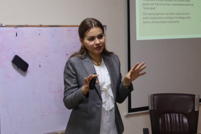 وسلطت المحاضرة الضوء على أحد المواضيع المهمة التي تمس صحة المرأة والمجتمع ، وهو تأثير تعاطي المخدرات على صحة المرأة ، حيث بينت إن تعاطي المخدرات يؤدي إلى اضطرابات هرمونية وعدم انتظام الدورة الشهرية وضعف الخصوبة وزيادة خطر الإجهاض والتشوّهات الخلقية أثناء الحمل.