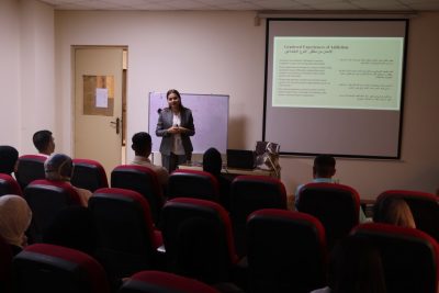وأوصت المحاضرة على كيفية التخلص من ظاهرة الادمان من خلال زيادة الوعي المجتمعي والقاء محاضرات توعوية للطلبة والموظفين وًتوفير مراكز تأهيل والشفاء من الادمان وتوجيه الاعلام ومواقع التواصل الاجتماعي على نشر الوعي لتجنب هذه الظاهرة السلبية.