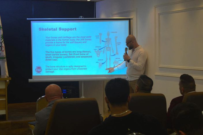 مؤكداً ان المحاضر الدولي اللبناني جان بيار سيواصل القاء محاضراته في هذه الدورة وعلى مدى 3 أيام، والتي ستتضمن شرحاً مفصلاً للقوانين الأساسية لتدريب الوزن، والمتغيرات الأساسية التي تؤثر على الشدة والكفاءة وخطر الإصابة خلال التمارين، بالإضافة الى استخدام مبادئ الميكانيكية الحيوية، للحصول على افضل النتائج، موضحاً ان هناك محاضرات خاصة عن كيفية زيادة الكتلة العضلية للرياضي، من خلال التمارين المنتظمة والتغذية المناسبة، بالإضافة الى الخطط التدريبية المختلفة التي تستهدف البناء العضلي الصحيح في الجسم.