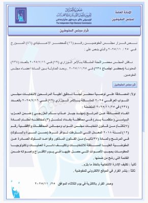 ▪️بالوثيقة.. المفوضية تستبعد المرشح الفائز عن منظمة بدر مهند الخزرجي وتلغي أصواته الانتخابية