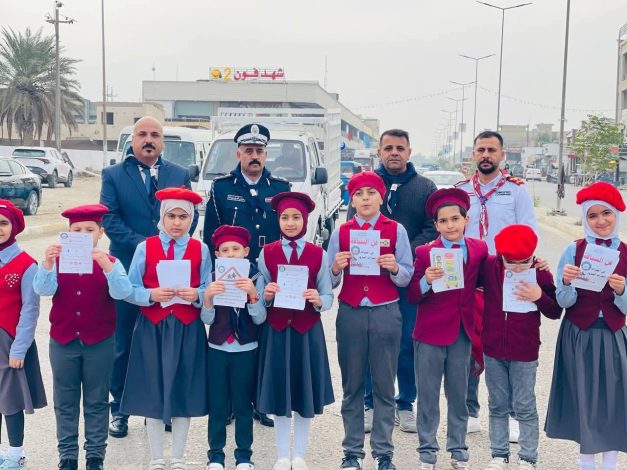 مدرسة الحسن الحكومية ذات المعايير الدولية في قضاء النعمانية تشارك مديرية المرور في إجراءات السلامة المرورية