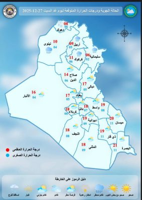 أحوال الطقس: امطار تبدأ غداً في المنطقة الشمالية وتشمل عموم البلاد يومي الاحد والاثنين مع انخفاض بدرجات الحرارة