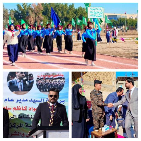 حضور الدكتور عباس عبد الزهره الحريشاوي مدير شباب ورياضة ميسان الاحتفال المركزي الذي اقامة تربية ميسان بذكرى تأسيس الجيش العراقي والشرطة العراقية برعاية وحضور مدير عام تربية ميسان الدكتور جواد كاظم سلطان الصگري نظم قسم النشاط الرياضي والكشفي – الشعبة الكشفية المهرجان المركزي الكشفي والمسيرة الكشفية الكبرى بمناسبة ذكرى تأسيس الجيش العراقي الباسل والشرطة العراقية وذلك صباح اليوم الأربعاء على أديم أرض المخيم الكشفي في ميسان. وشهدت الفعالية حضور أعضاء مجلس المحافظة وشخصيات أمنية وأكاديمية وتربوية إلى جانب عدد من المسؤولين رفيعي المستوى وبمشاركة واسعة بلغت (١٣٤) مدرسة للبنات في المسيرة الكشفية التي جسدت أسمى معاني الانتماء والولاء للوطن فيما خُصص يوم غد الخميس لمشاركة مدارس البنين.
