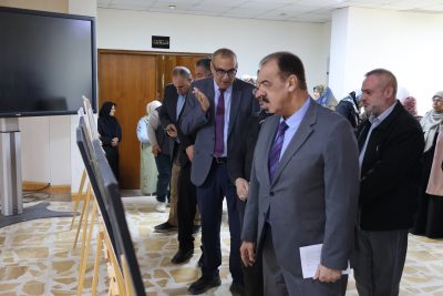 وفي ختام الحفل افتتح عميد الكلية معرضاً للخط والزخرفة الاسلامية تم فيه عرض 30 لوحة فنية شارك فيها طلبة الكلية.