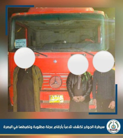 سيطرة(الجوابر) تكشف تلاعباً بأرقام عجلة مطلوبة وتضبطها في البصرة