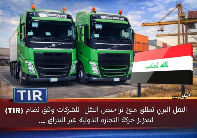 باشَرت الشركة العامة للنقل البري بصفتها الضامن المحلي لنظام إتفاقية التير (TIR) في العراق ، بإجراءات منح تراخيص نقل البضائع للشركات وفق هذا النظام الدولي ، في خطوةً تهدف إلى دعم حركة النقل الدولي وتسهيل إنسيابية عبور الشاحنات عبرَ المنافذ الحدودية.