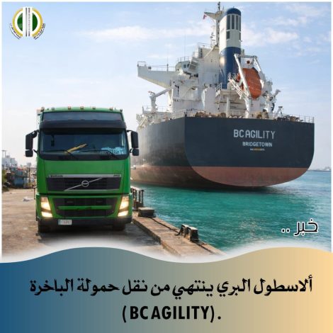ألاسطول البري ينتهي من نقل حمولة الباخرة ( BC AGILITY) .