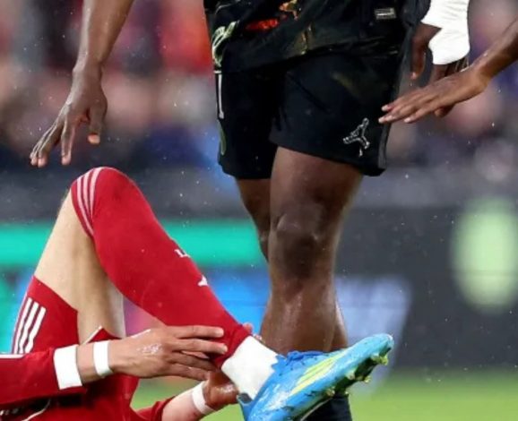 وسقط اللاعب (23 عاما) دون التحام، مما اضطره لمغادرة ملعب “آنفيلد” على محفة طبية وسط ملامح من الألم الشديد.