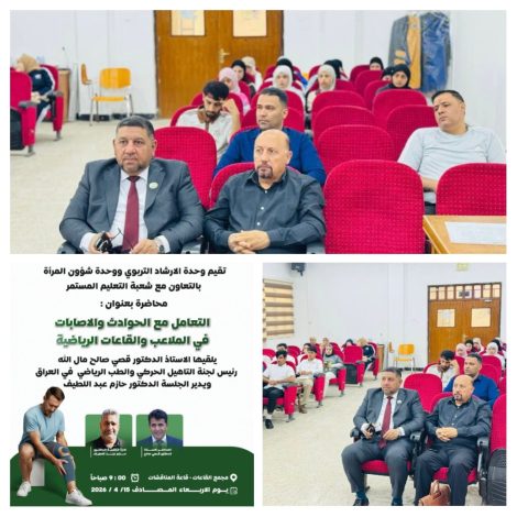 وقد ألقى محاضرة الورشة الأستاذ الدكتور قصي صالح مال الله، متناولًا أبرز الأساليب الحديثة في التعامل مع الإصابات الرياضية وآليات الوقاية منها، فيما أدار الجلسة الدكتور حازم عبد اللطيف الشاوي، الذي أسهم في تنظيم محاور النقاش وإثراء الحوار العلمي بين الحاضرين.