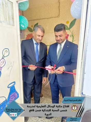 حسب توجيهات المدير العام لتربية الكرخ الثانية الدكتور ( قيس اسماعيل الكلابي) حضر مدير قسم تربية الدورة الأستاذ ( محمد جمال عبدالله ) مراسم افتتاح مكتبة الوسائل التعليمية في مدرسة شمس المحبة الابتدائية وذلك في إطار دعم العملية التربوية وتعزيز استخدام الوسائل الحديثة في التعليم.